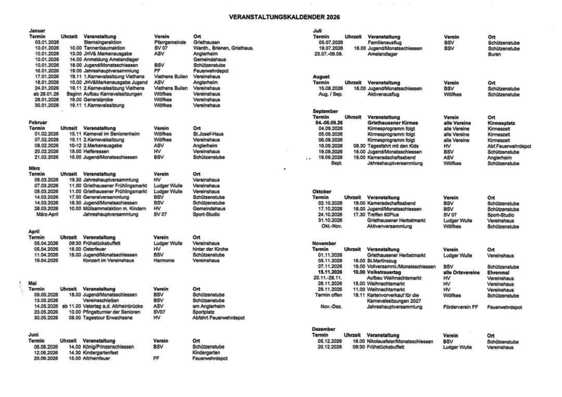 Veranstaltungskalender 2026